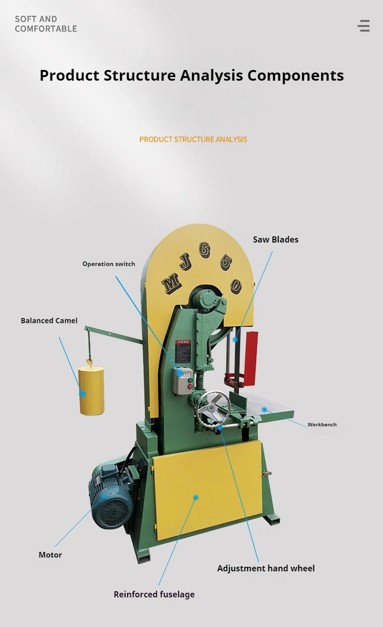 TEBAK Good quality MJ650 woodworking solid wood cutting band saw machine vertical resaw band saw for industrial