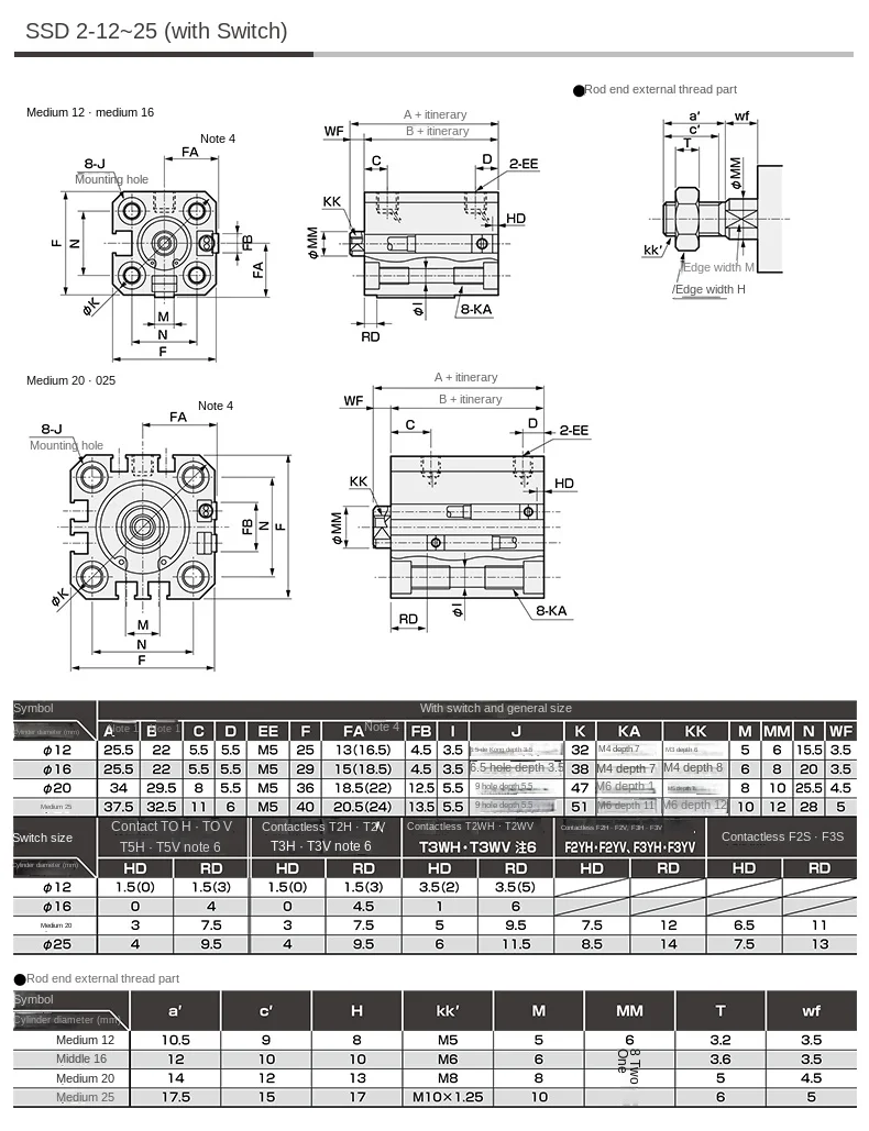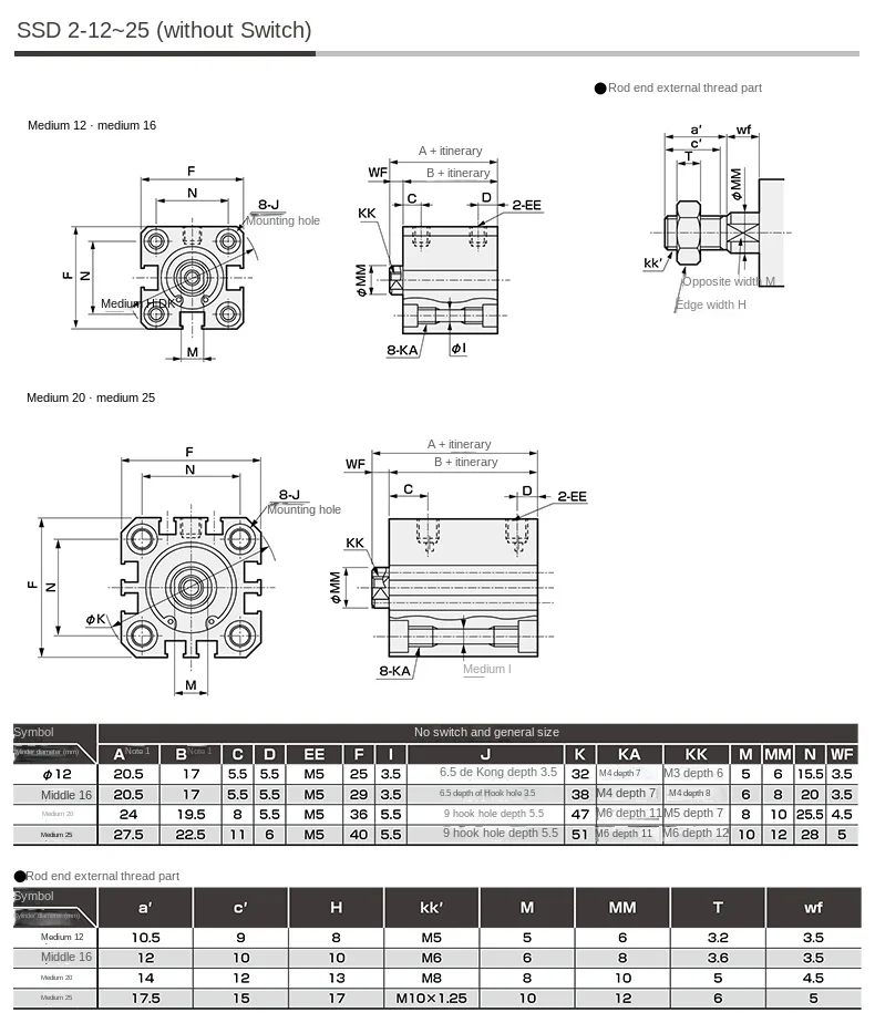 ANDUUK Compact Cylinder SSD2-L-12-5/10/15/20/25/30-N-W1/-W1 Thin Cylinder