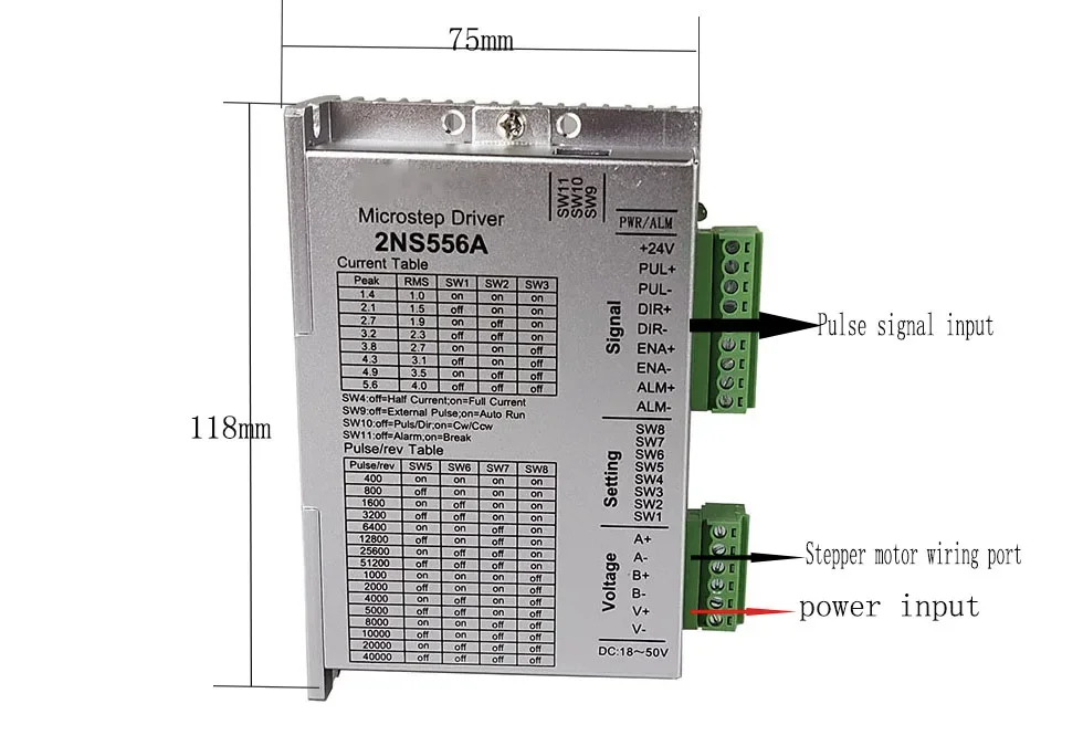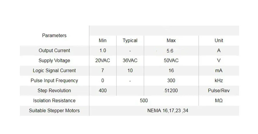 2NS556A is a new digital two-phase stepper motor driver . It adopts the latest 32-bit DSP technology. Users can set the subdivision within 400~51200 and any current value within the rated current, which can meet the application in most occasions. need. Thanks to the built-in micro-segmentation technology, even in the case of low subdivision, high subdivision can be achieved, and the operation at low, medium and high speeds is smooth and the noise is extremely small. The parameter auto-tuning function is integrated inside the drive, which can automatically generate optimal operating parameters for different motors to maximize the performance of the motor.