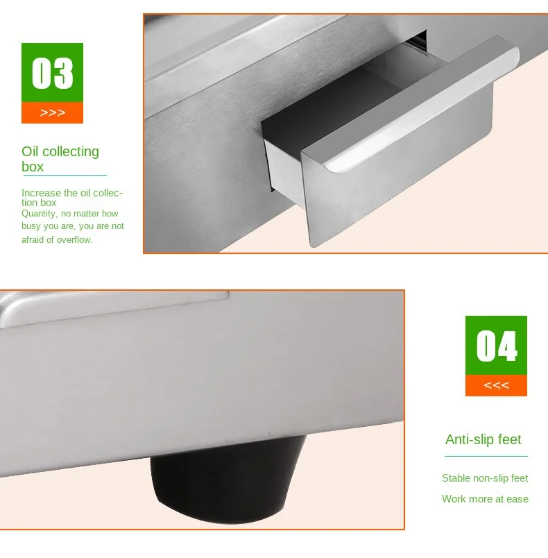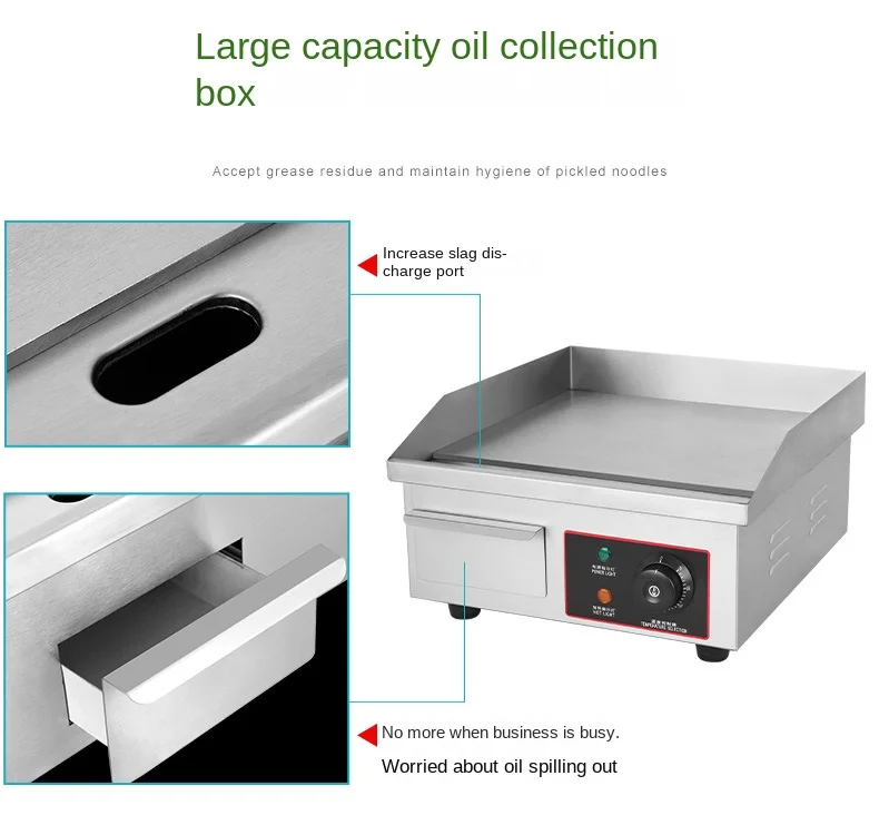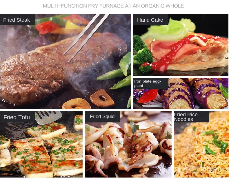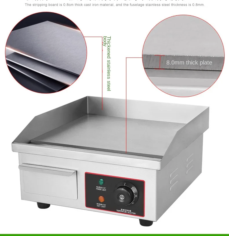 FOR VARIOUS FOODS: The electric flat top grill is versatile and suitable for both domestic and commercial settings, including restaurants, shops, roadside stalls, and snack bars. It excels in preparing a wide range of dishes such as pancakes, crispy bacon, roasted cheese, hearty breakfasts, fried delicacies, omelets, pizza, steak, and hamburgers.