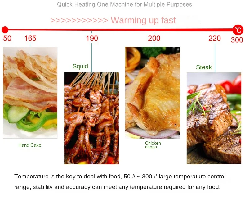 PRECISE HEATING CONTROL: The internal heating tube can be controlled by two constant temperature buttons to adjust the temperature to meet different foods. Up to 572℉ with a wide temperature control range. For the first time, the electric grill may have a small amount of smoke; the smoke will disappear after heating for a few minutes.