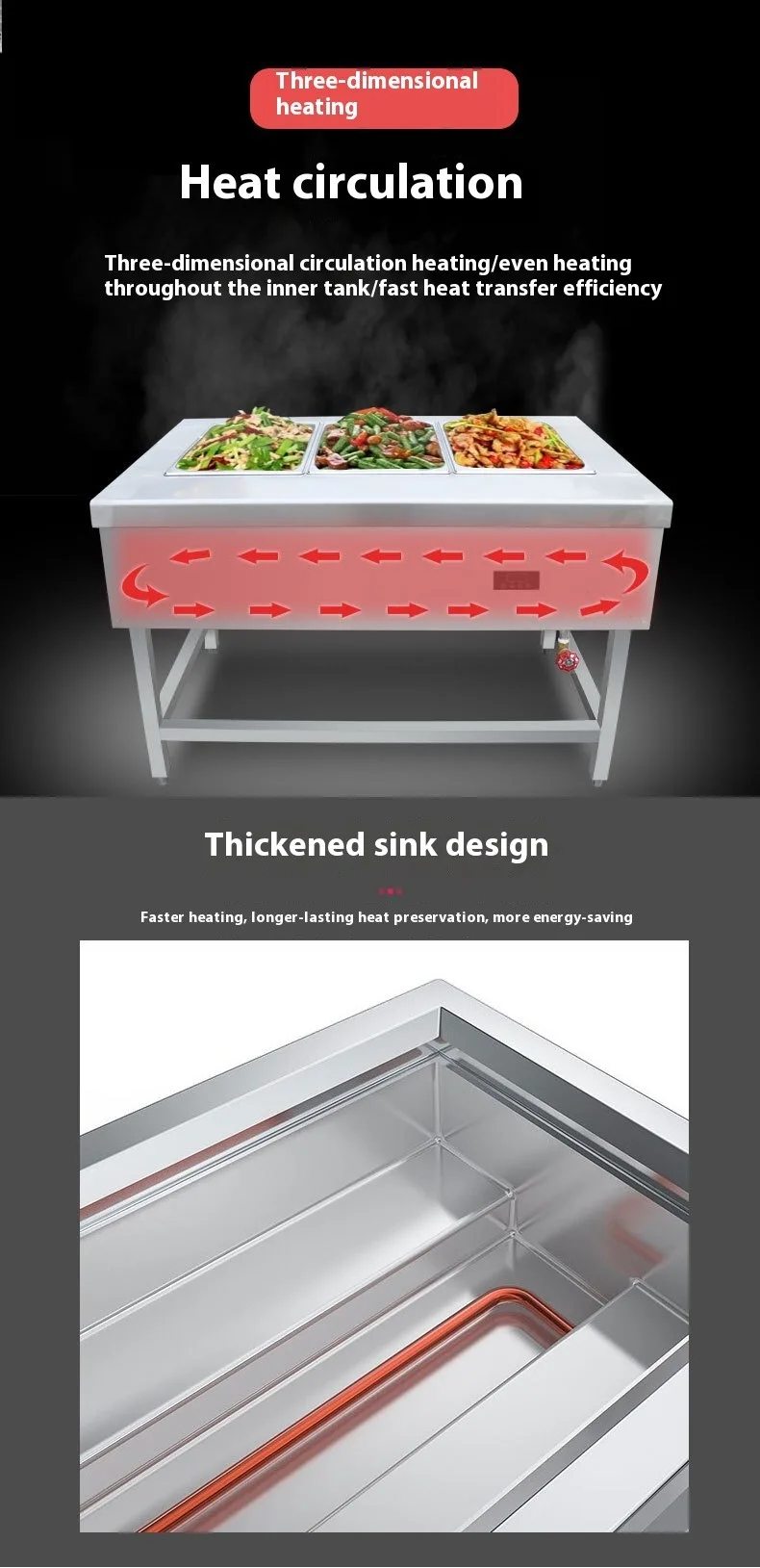 Factory Buffet Restaurant Electric Bain Marie Server Showcase Industrial Fast Hot Food Warmer Steam Commercial Work Table