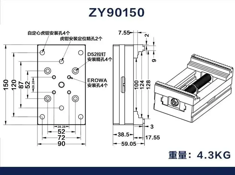 Four-axis Five-axis Concentric Fixture CNC Self-centering Vise EDM Copper Male Electrode Mechanical Parts Machining Precision
