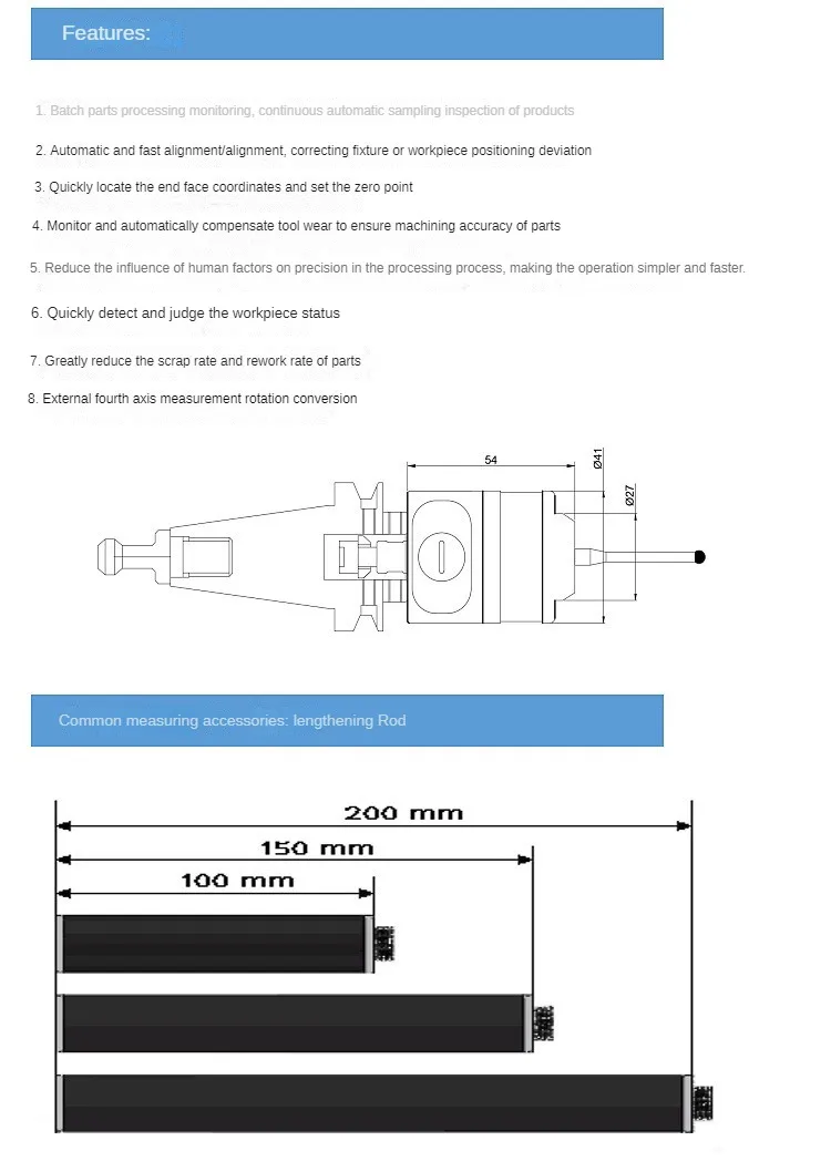 High Precision Radio Wireless Cnc Lathe Cnc Chuck Woodworking Bench Fractal Vise Cnc Bt40 Spindle Touch Probe