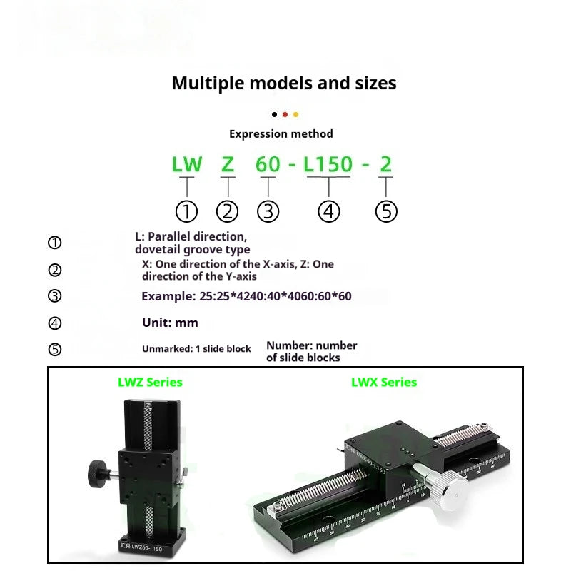 LWZ60 L=100-500mm Z Axis Dovetail Groove Linear Long Stroke Fine-Tuning Sliding Table Manual Displacement Trimming Platform