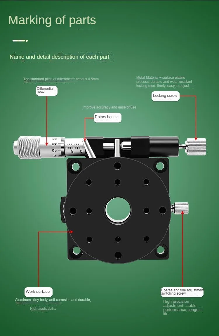 Manual Precision Adjustment of Displacement with High Load and High Precision Micrometer Fine Adjustment of Manual Slide Table