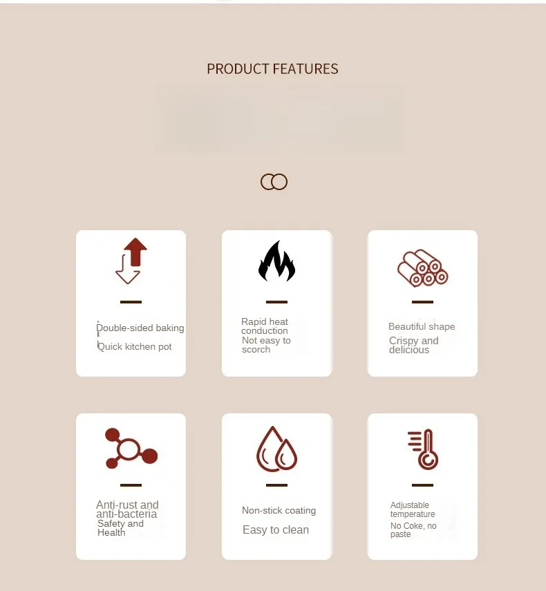 1. Non-stick cooking grids form perfectly cooked waffles in diameter without batter sticking.