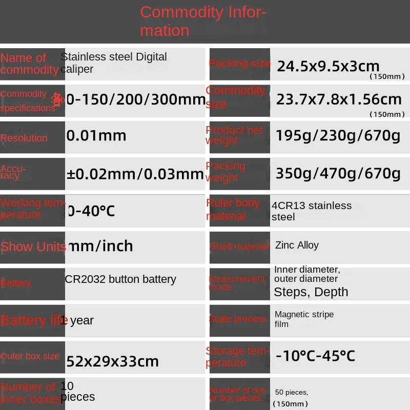 TEBAK 0-150mm 0-200mm 0-300mm Stainless Steel 6 inch Electronic Digital Vernier Caliper with Large LCD Screen Measuring Tools