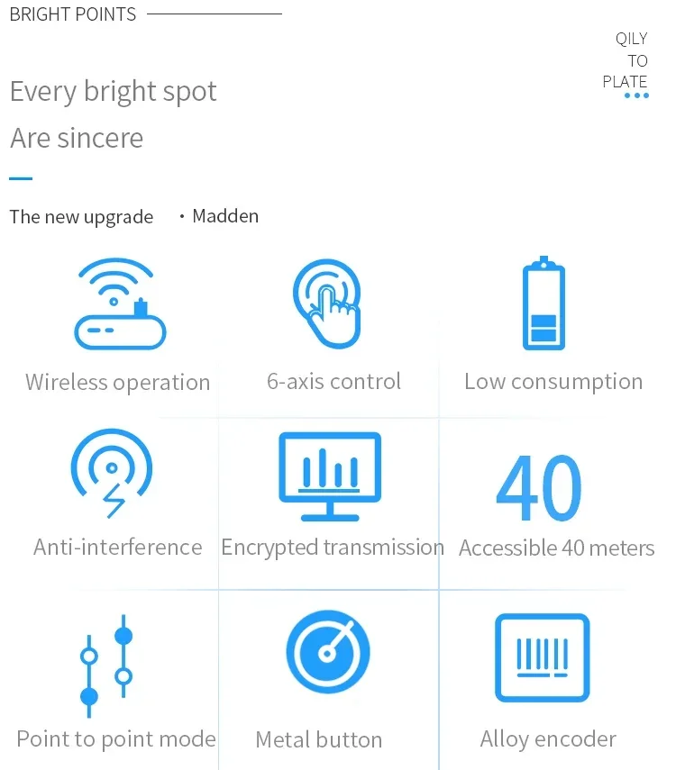 4. Wireless hand wheel, far transmission distance, straight 60 meters can stable operation without obstacle