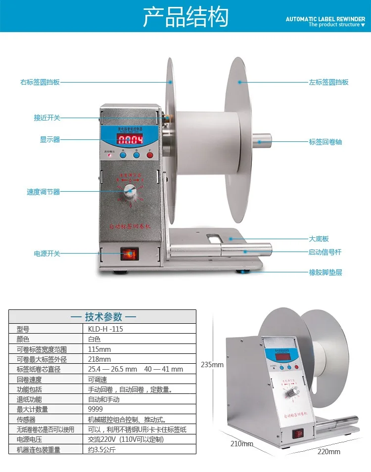 TEBAK Automatic Label Winder Rewinder and Unwinder Machine Rewind Stick Labeling Machine