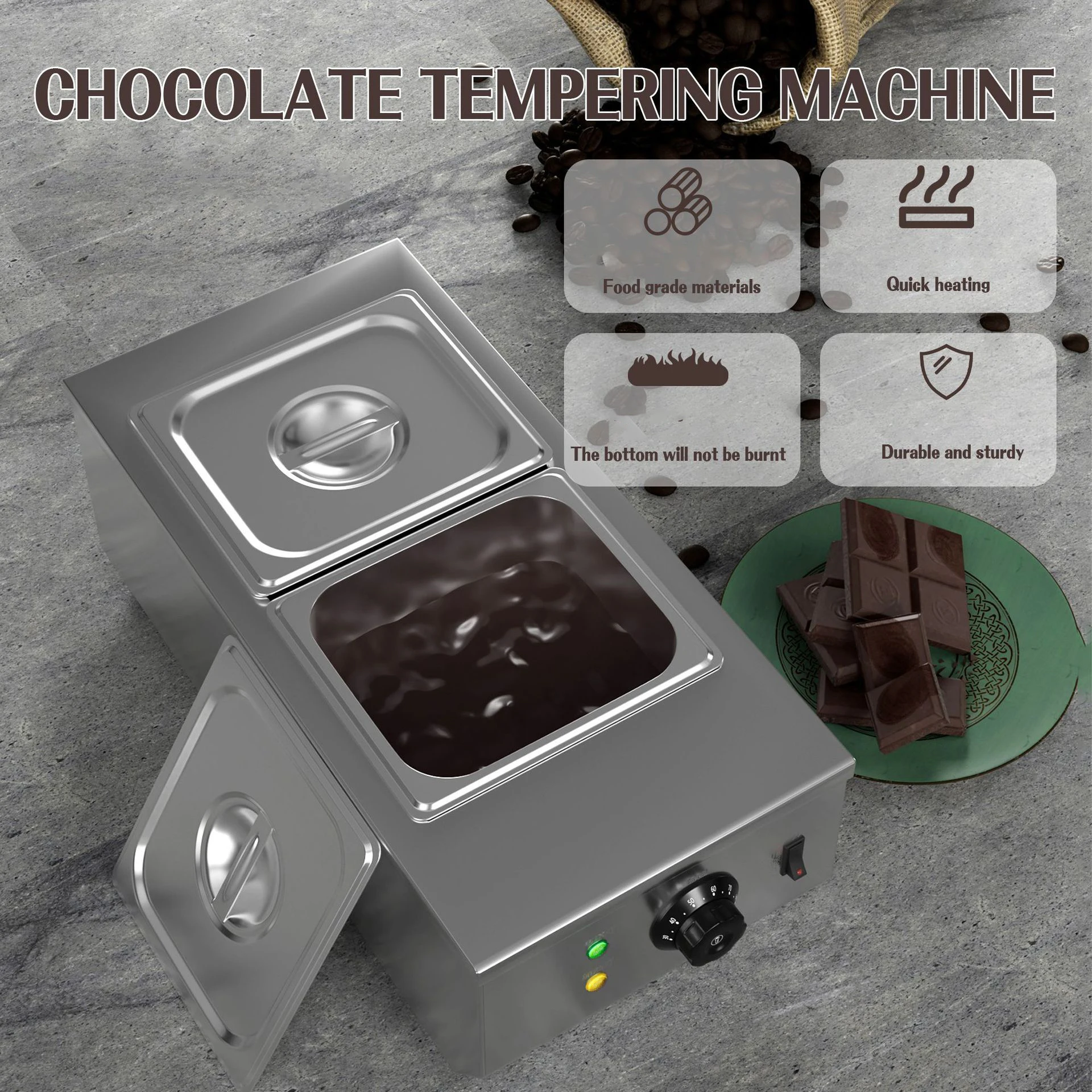 TEBAK Commercial Stainless Steel Chocolate Melting Pot Heating and Melting Chocolate Through Water Separation Furnace Machine