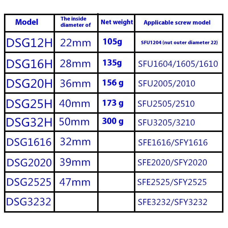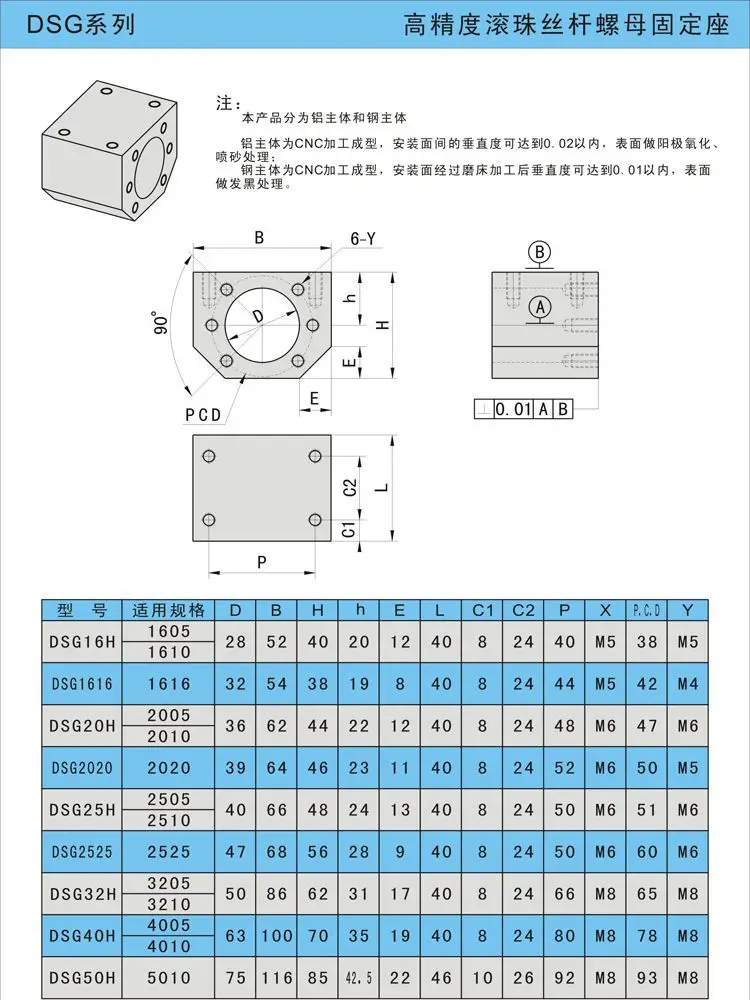 TEBAK D-01 SFU1605 1610 Ball Screw Nut Housing DSG12H 16H 20H 32H 40H Aluminium Alloy Ballscrew Nut Housing Bracket Holder Fit