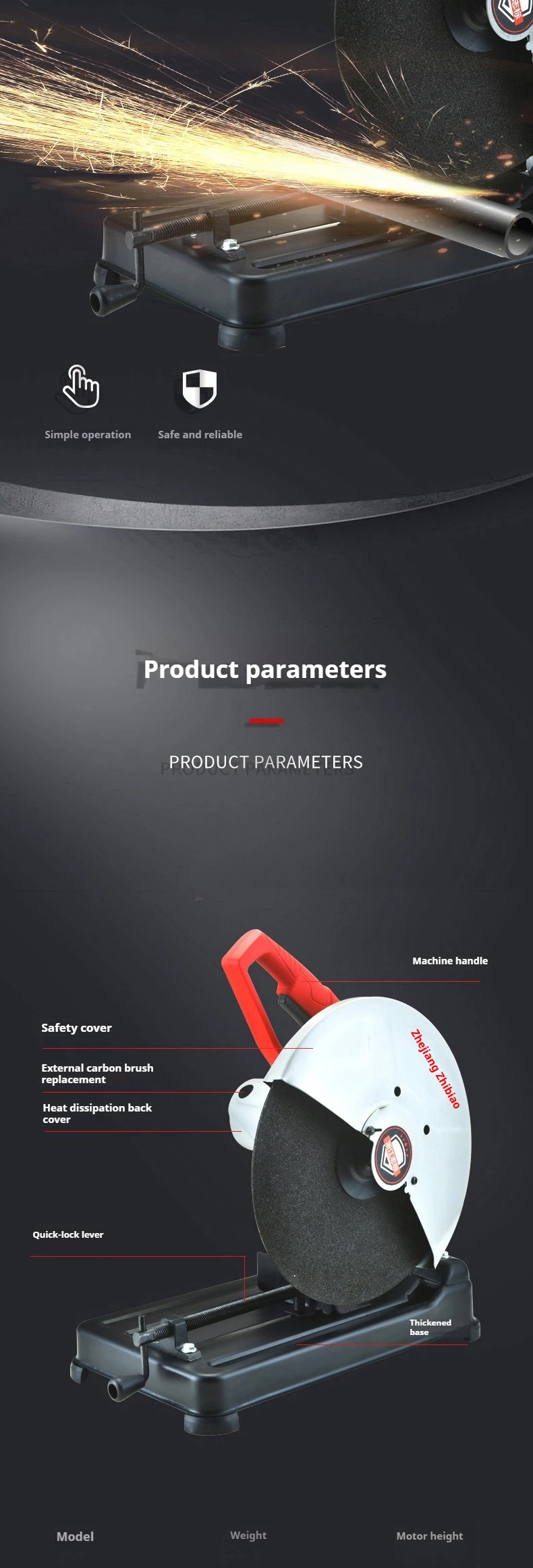TEBAK Iron Industrial Metal Chop Off 355mm 14 Inch Chop Saw Electric Rod Cutters Metal Cutting Machine