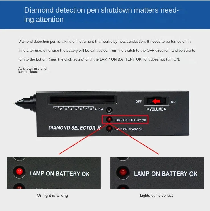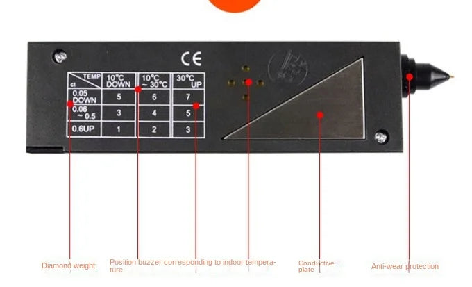 2. This instrument is a precision electronic instrument, the use environment is 5-35 degrees Celsius, the relative humidity of the air is less than 80%. 3. The tested stones must be clean, dry and at room temperature. Technical characteristics: 1. Pocket portable handheld. 2. Non-destructive testing, easy and accurate operation. 3. Excluding batteries(Logistics cannot be transported)