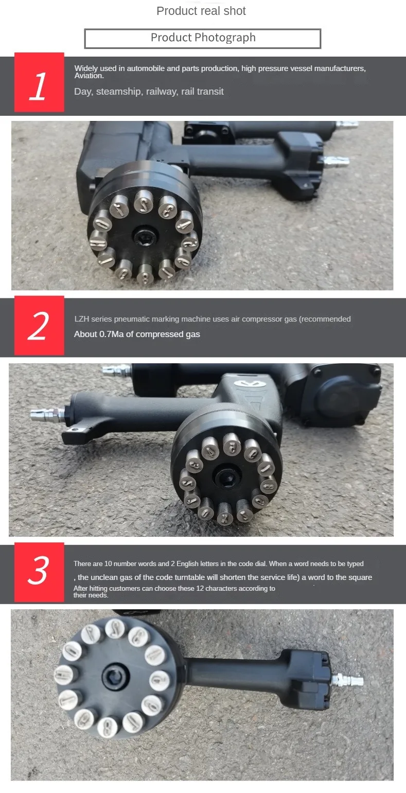 TEBAK Pneumatic Stamping Hammer 12 Character Dial Stamp Impact Marking Tool for 4,5,6,7,8 Building Machinery