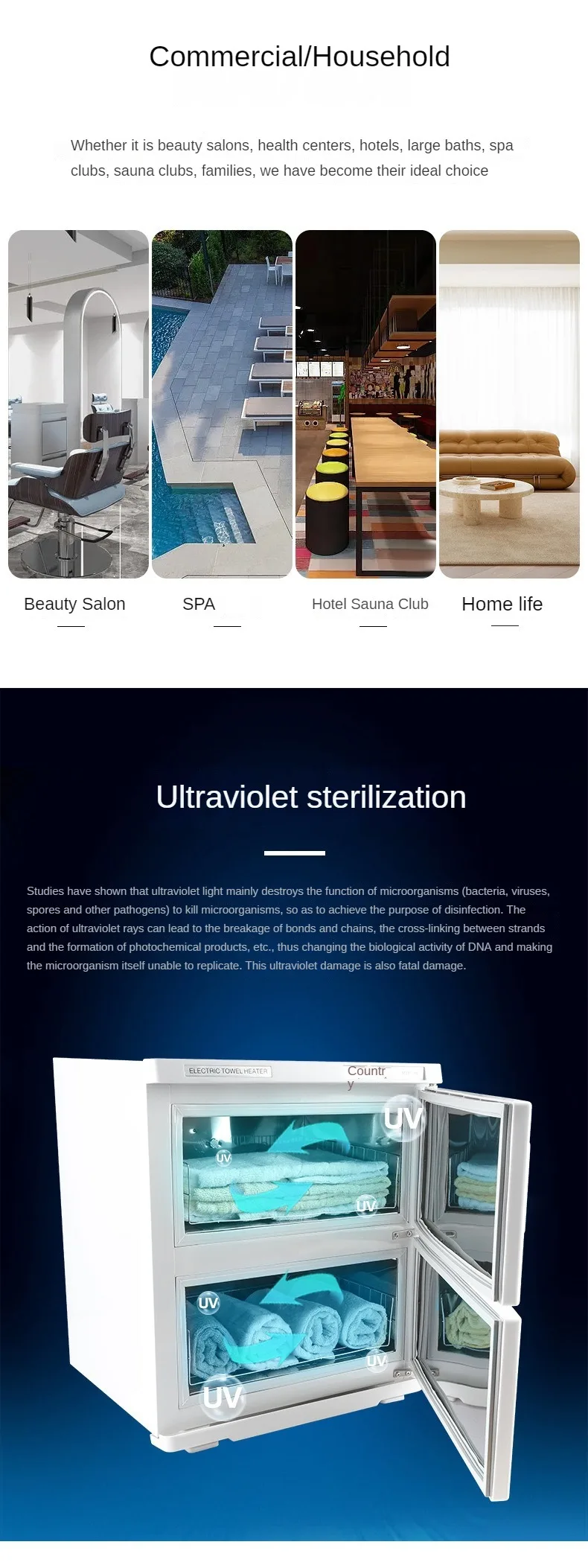 TEBAK Professional Electric Vertical Salon Spa Tool Cabinet Towel Heater Ultraviolet Towel Warmer