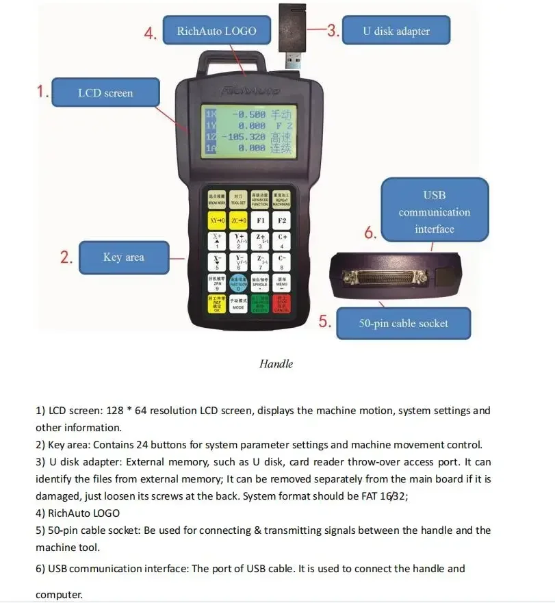 TEBAK RichAuto DSP CNC USB Offline Controller B11S B11E 3-Axis Handheld Motion Control System for Engraving and Milling Cutting