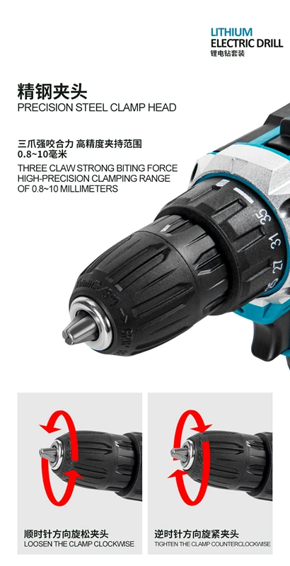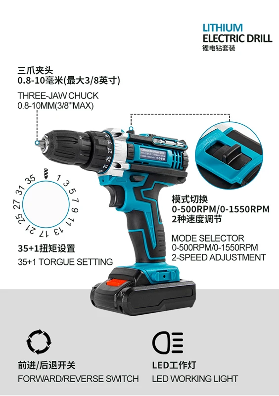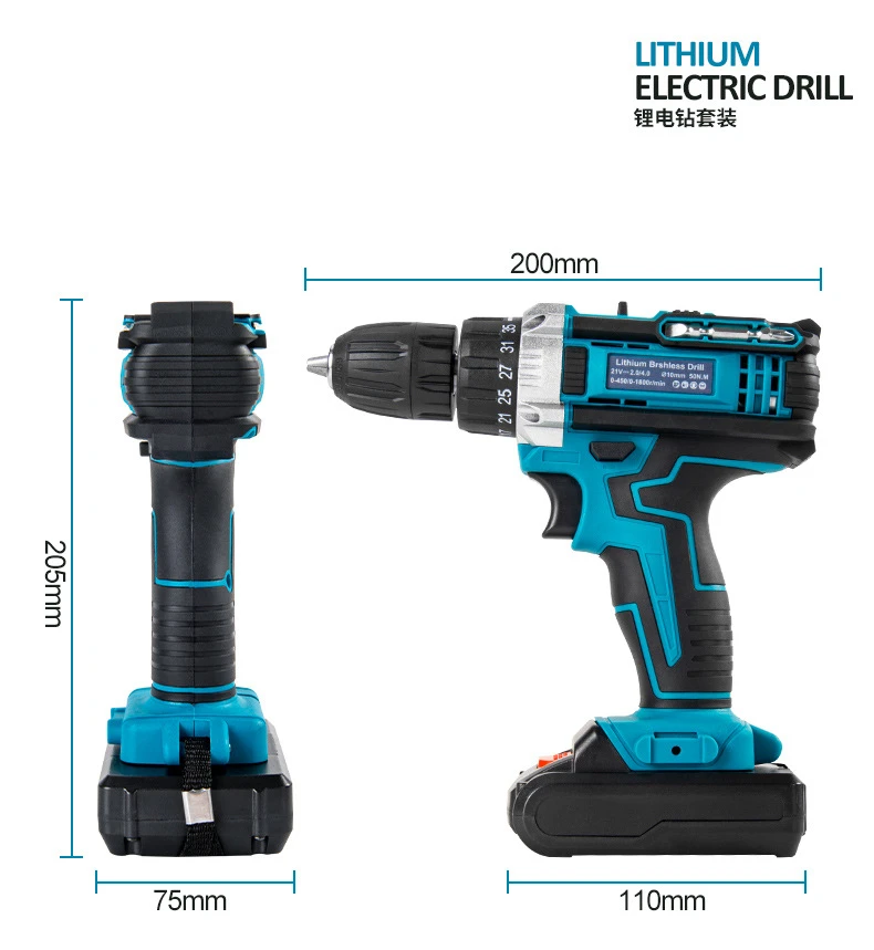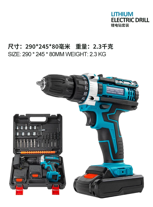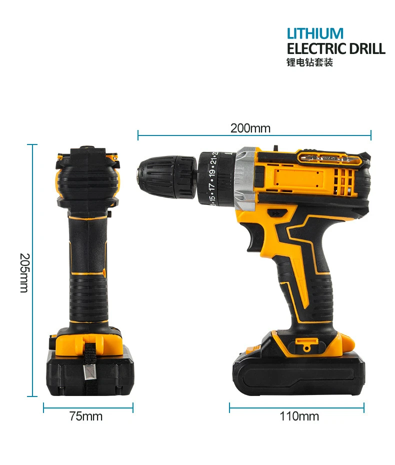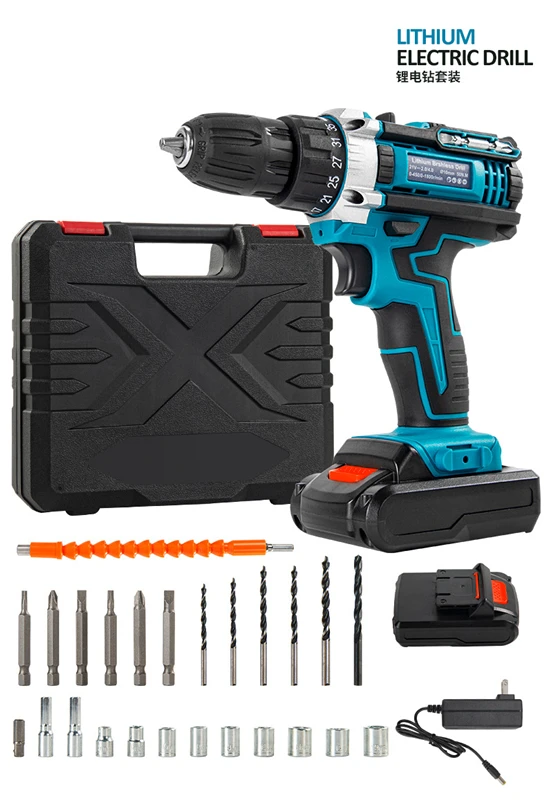 Two-Speed Cordless Electric Power Tools 21V Three Function Impact Drill Brush Battery Impact Drill Electric Screwdriver