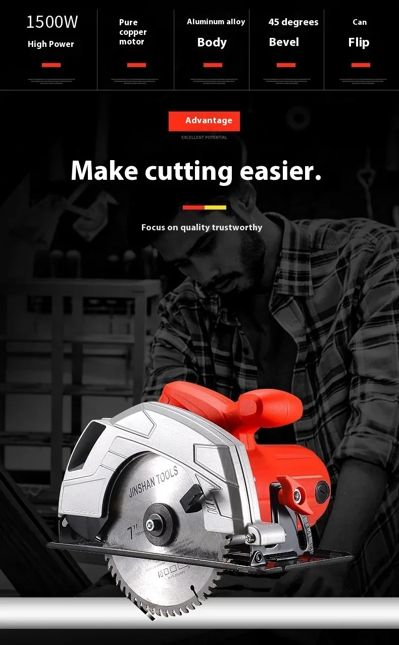 Woodworking Circular Saw Home Decoration Portable 2400w 235mm Wood Cutting for Kinds of Wood Board Circular Saw
