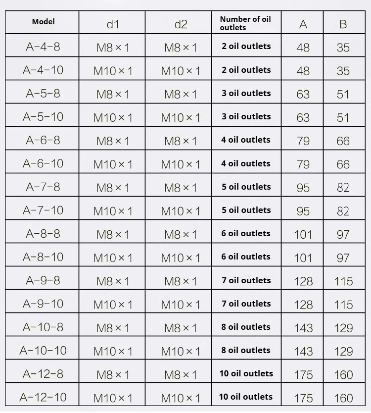 Zinc Alloy Type a Resilient Oil Distribution Device - Oil Distribution Block - Oil Outlet - Oil Pump Oil Distribution Unit
